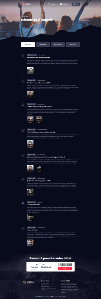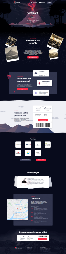 Chaque année, l’événement WebIsland se réinvente autour d’un nouveau storytelling complet qu’il met en scène le jour J. Il faut penser le site web pour que le visiteur soit plongé dans cette ambiance si particulière dès l’achat de son billet !
